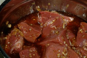 In this incarnation you want to use a good cut of beef, I used large cubes of beef tenderloin. My butcher sells the filet ends whole & uncleaned at a really good price, $8 something per pound, so when I am wanting a decadent beef dish this one is a go-to because I clean and butcher it myself; that isn’t an option for everyone. Cleaning a beef tenderloin is a tad more difficult than a pork tenderloin, a bit more silver skin and fat to clean.