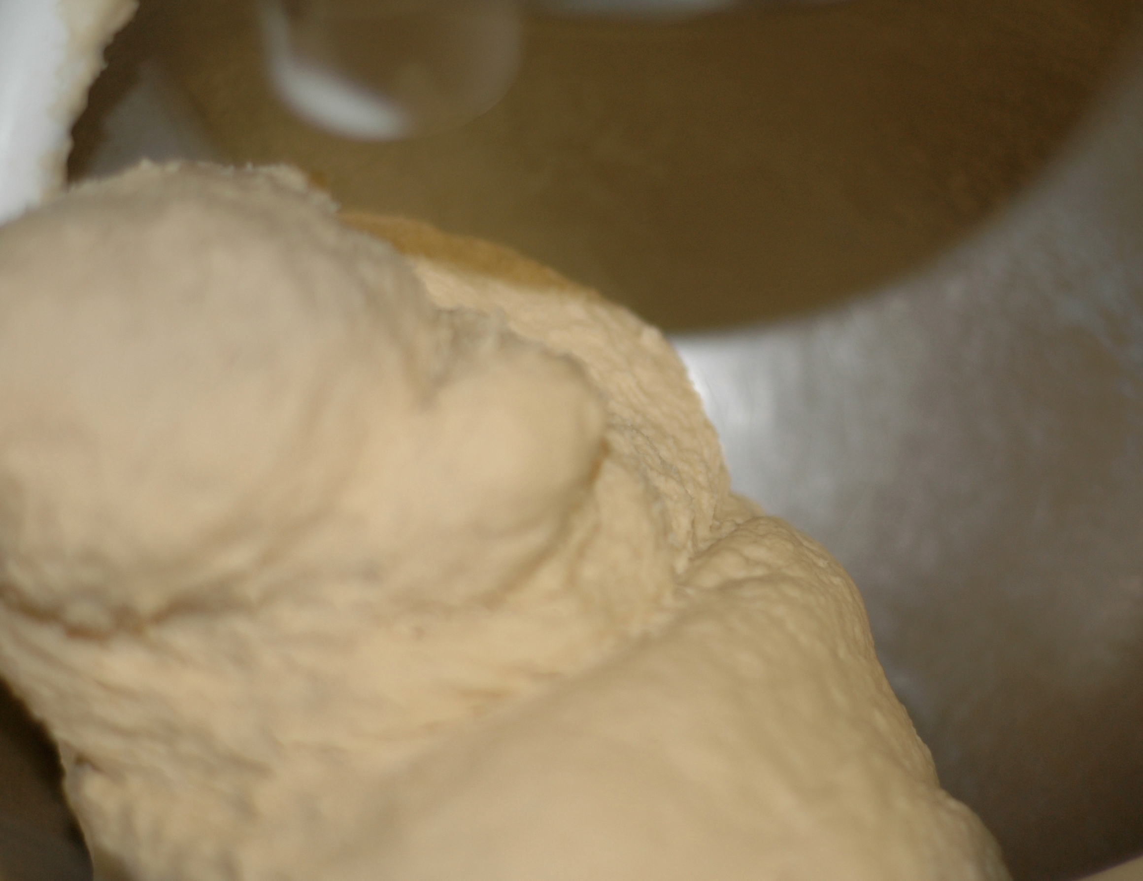 The beer needs to be warm. Mine was cold because it is on draft so I warmed it over medium heat in the bowl of my mixer to about 90 degrees, even if not cold you will need to warm it up some. Once warmed add the yeast and brown sugar and set someplace warm until it foams. When the yeast is happy & foamy mix in the melted butter and salt. Add 4 cups of the flour and put on the mixer with the dough hook. Mix until it forms a dough. Add additional flour as needed to get the dough to completely pull away from the side of the bowl, even the bottom. Once there is enough flour in the dough let it mix for another 5 minutes, roughly, kneading it until the outside of the dough is smooth and elastic.