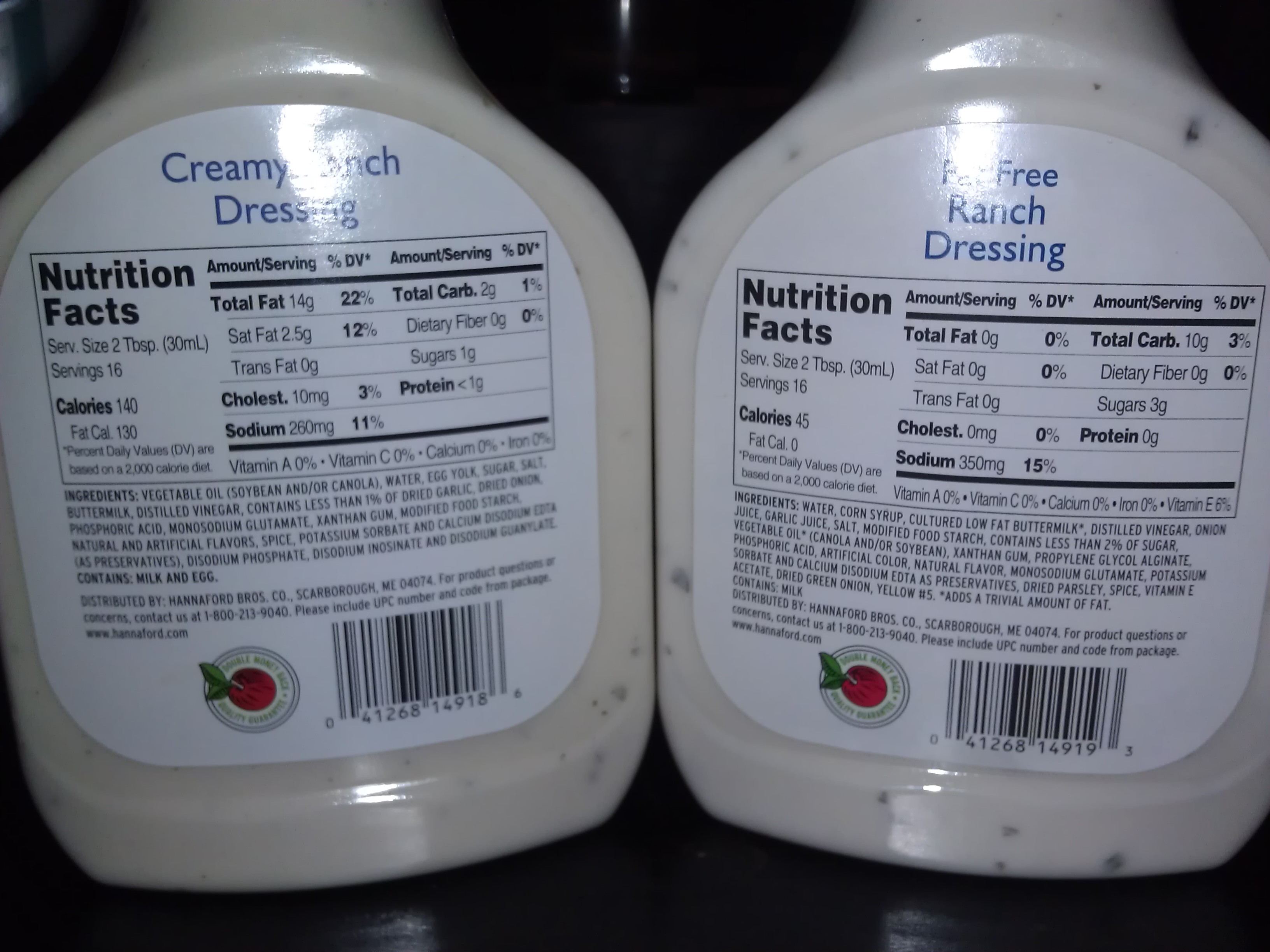 - Ranch #2 – Same brand Fat Free off shelf – 45 calories, 0g fat per ounce