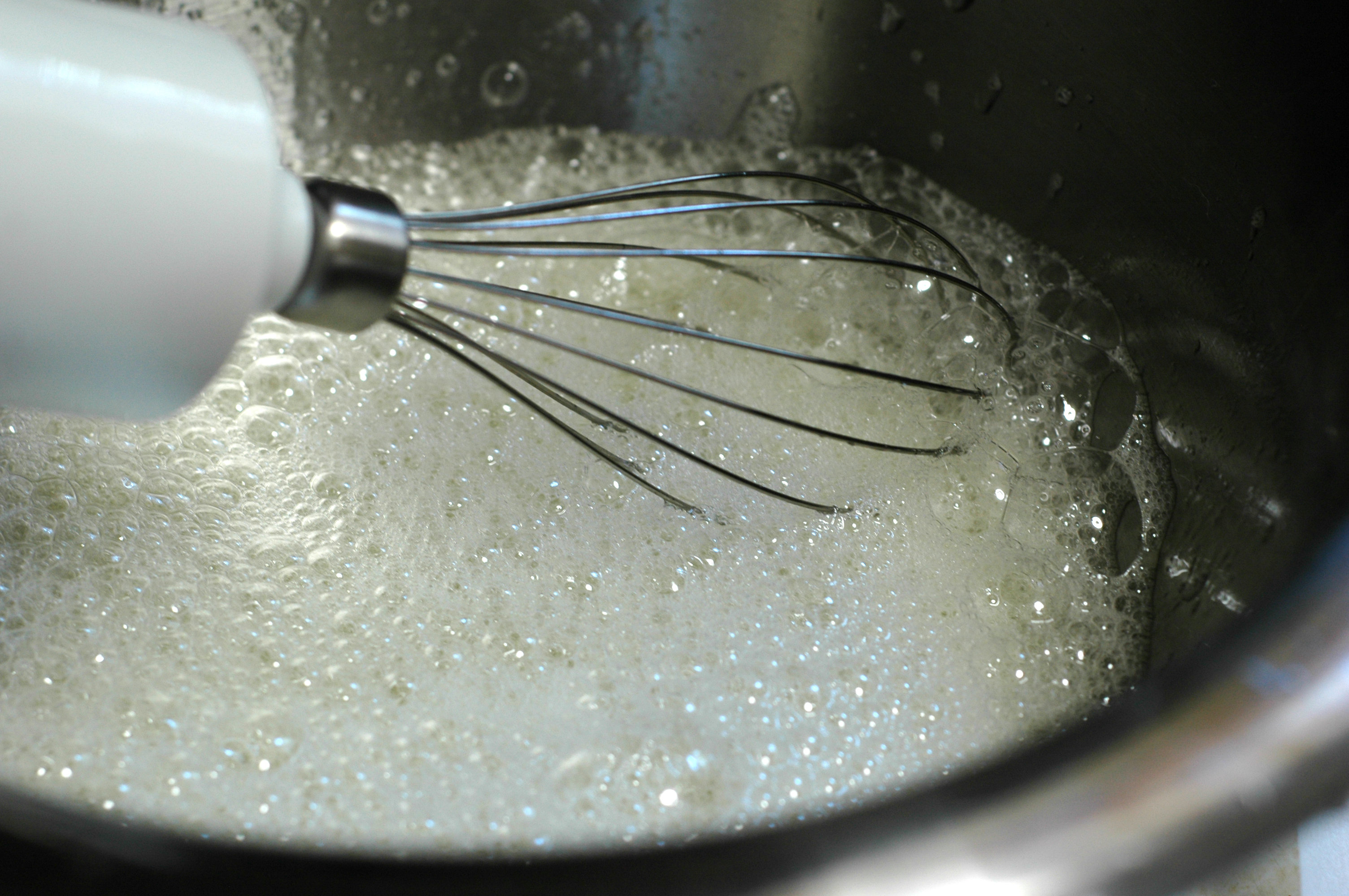 The recipe calls for 12 egg whites and there cannot be a speck of yolk in them. Not. A. Speck. Egg wites will not whip, no matter how hard or what equipment you are using to whip them, if there is any yolk in the whites. If you are not an experienced egg separator use a small bowl and separate one at a time into it then dump into the bowl you are whipping them in. Doing it that way means if there is a mishap you dont have to pitch the whole batch because of it. Related: It is not possible to completely remove egg yolk from the white once some falls in there. Trust me. Every green chef tries to whip the holy hell out of egg whites they goofed up when separating and every green chef wastes a ton of time and energy to learn that when they said it won’t work they weren’t lying.