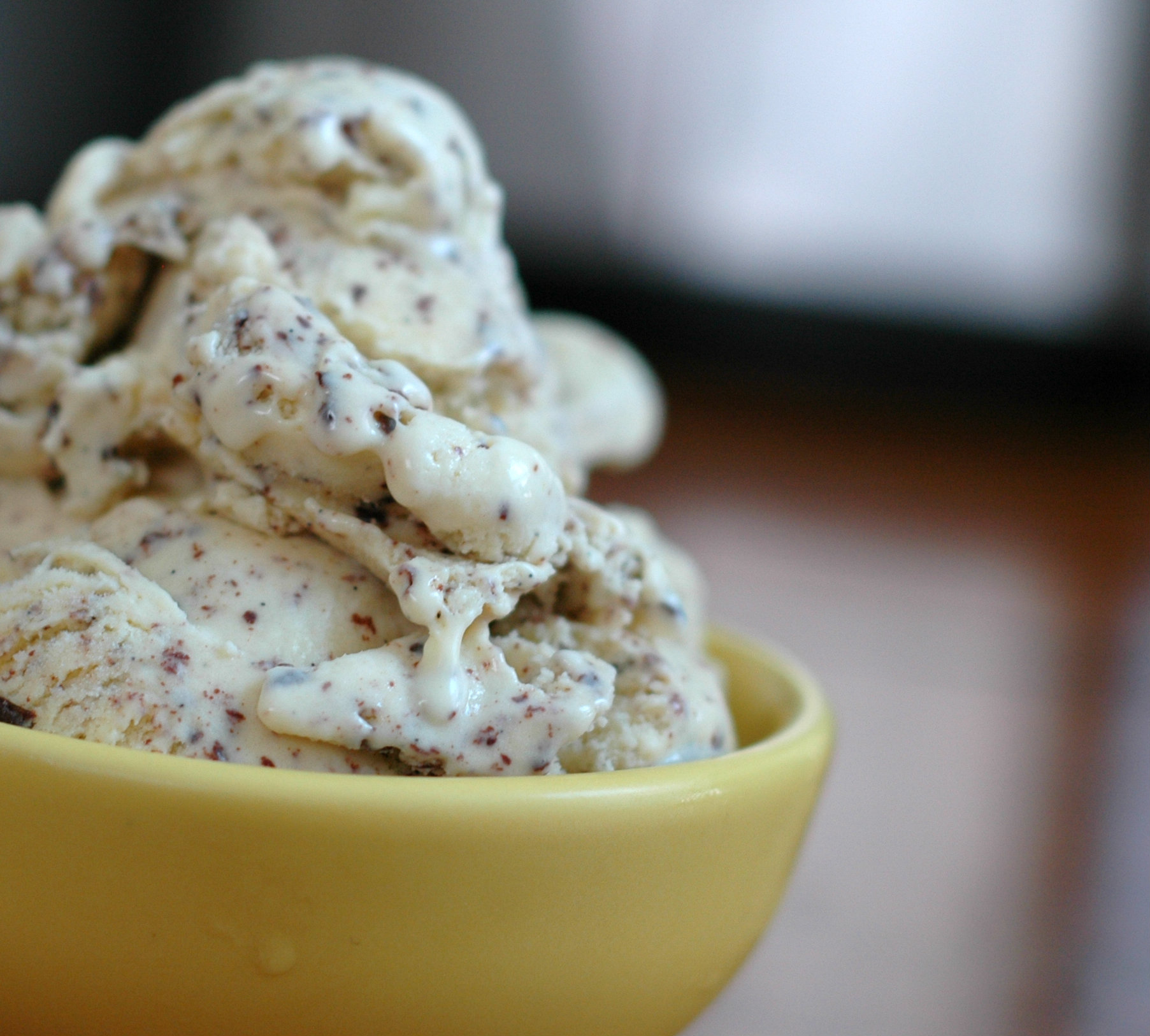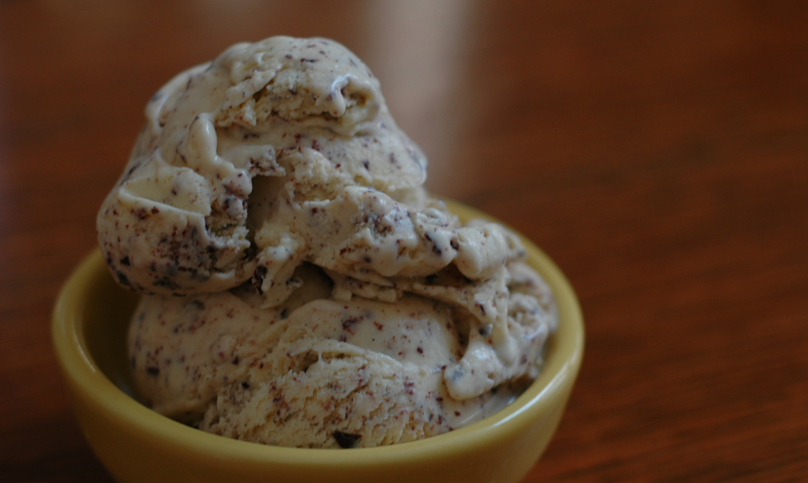 As with most food I am a purist and, well, snob, about ice cream, too. Ice cream is really simple, 6, maybe 7, ingredients in the base mix for it plus whatever noms you choose to add to the party. Check out the ingredient list on the back of a store or cheap brand of ice cream, though; there are a LOT more than 7 ingredients listed back there, a lot of which are in ‘science-speak’. Why, you ask? Well because the companies who make lesser ice creams want to get as much bang for their buck as they can. They need to be able to use more of the less expensive ingredients while not loosing the creaminess of a good ice cream AND want their mixes to hold more air as they freeze for a higher batch yield. Yes, air. It is a huge (and free) key component of ice cream so of course they want to get as much in there as possible, air takes up space and cost nothing to add. I get it. But I don’t have to eat it.