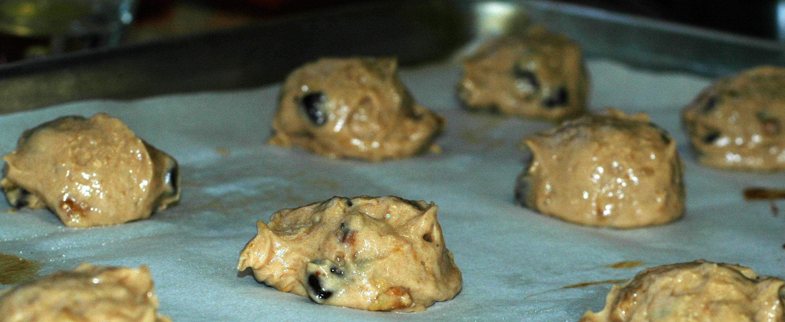 Like the zucchini cookies I wouldn’t omit the nuts with out replacing them with something else. They aren’t just there for flavor, in these they add a bunch to the texture of the cookie. Double up on the chocolate chips or swap out another nut (pecans or any kind of softer nut will work well) to make up the difference otherwise the cookies will be very flat. I scoop them w a purple handled scoop, a heaping Tablespoon, a dozen at a time onto parchment lined trays.