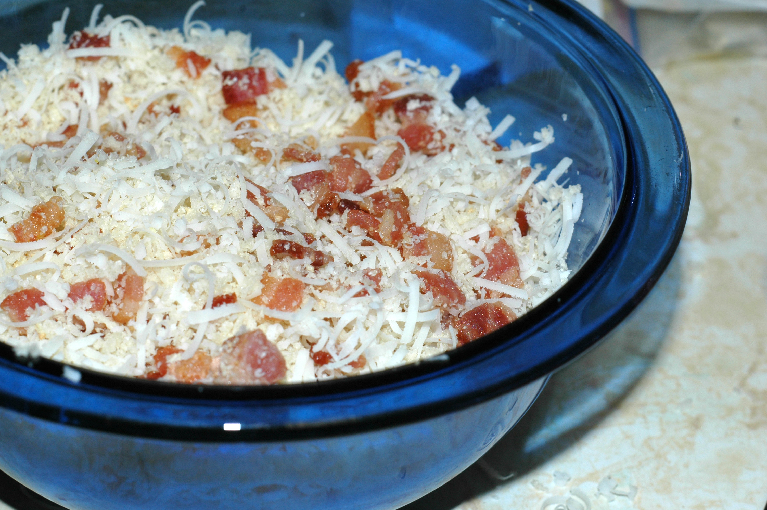 While all of this is going on mix all of the ingredients for the topping together in a bowl. Mmmmmmmm…Bacon.