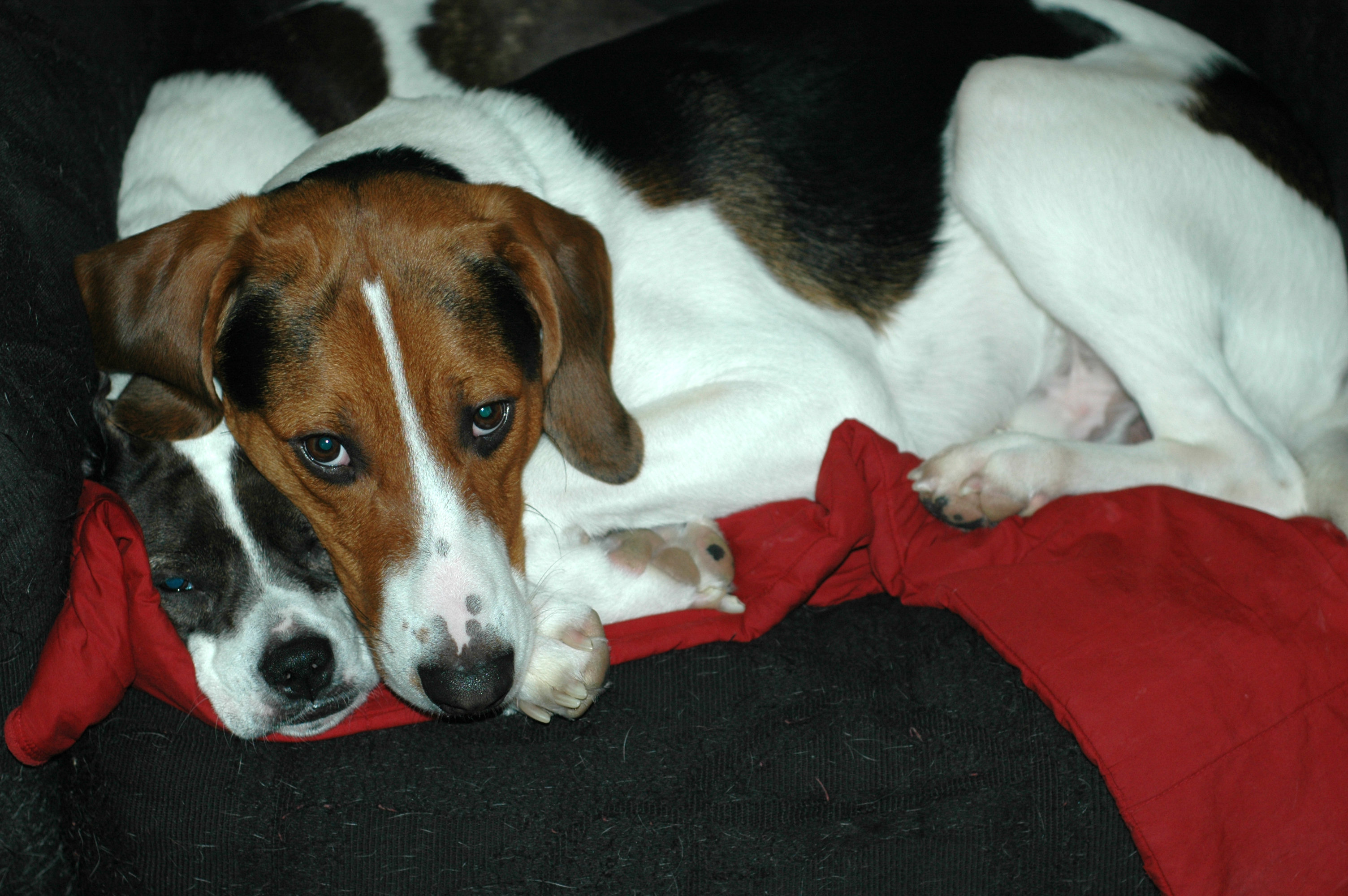 And here is a gratuitous pic of my adorable beasts because they stayed in this position long enough for me to take one. I asked Buster but he couldn’t tell me WHY he feels the need to lay his 90# of fur on Gizmo’s 40# of adorable for napping.